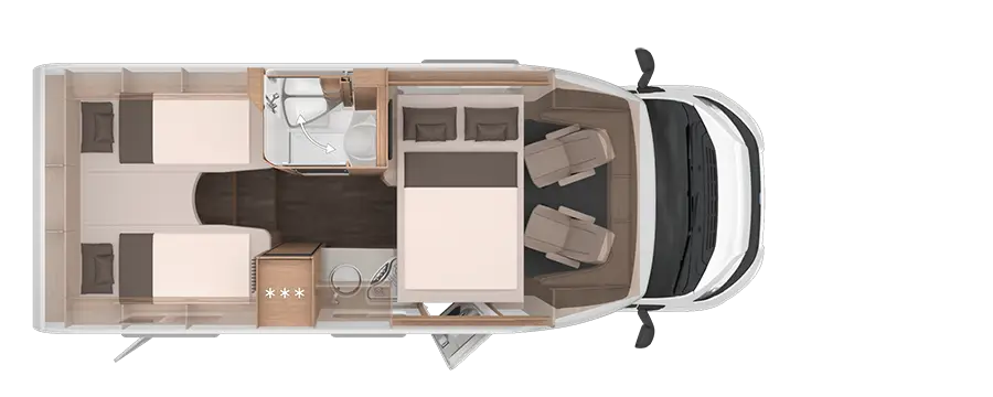 Serienmäßiges Automatikgetriebe, Hubbett, für bis zu vier Personen und eine All-Inclusive Ausstattung machen dieses Reisemobil zu einem echten Highlight für Familien und komfortorientierte Camper.